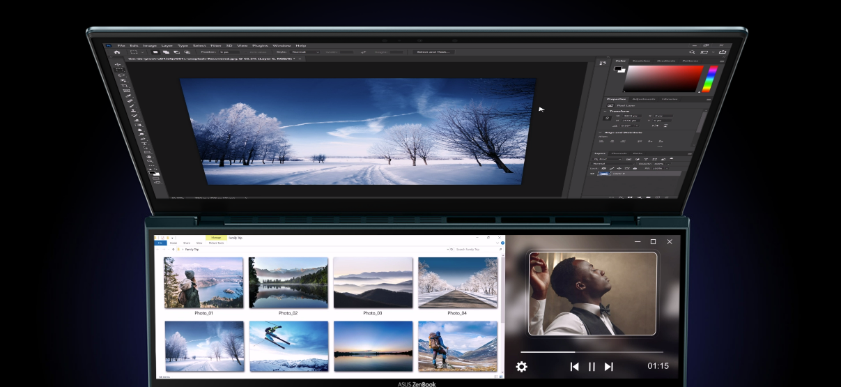Nowy ASUS ScreenPad Plus z mechanizmem nachylania jest napędzany najnowszym oprogramowaniem ScreenXpert 2, które zostało zaktualizowane dla umożliwienia pracy wielozadaniowej na kilku ekranach oraz maksymalnego ułatwienia zadań twórczych. Zwiększysz swoją produktywność przy użyciu zintegrowanych aplikacji i zrewolucjonizujesz cykle pracy twórczej z nową aplikacją pulpit sterowania (Control Panel).