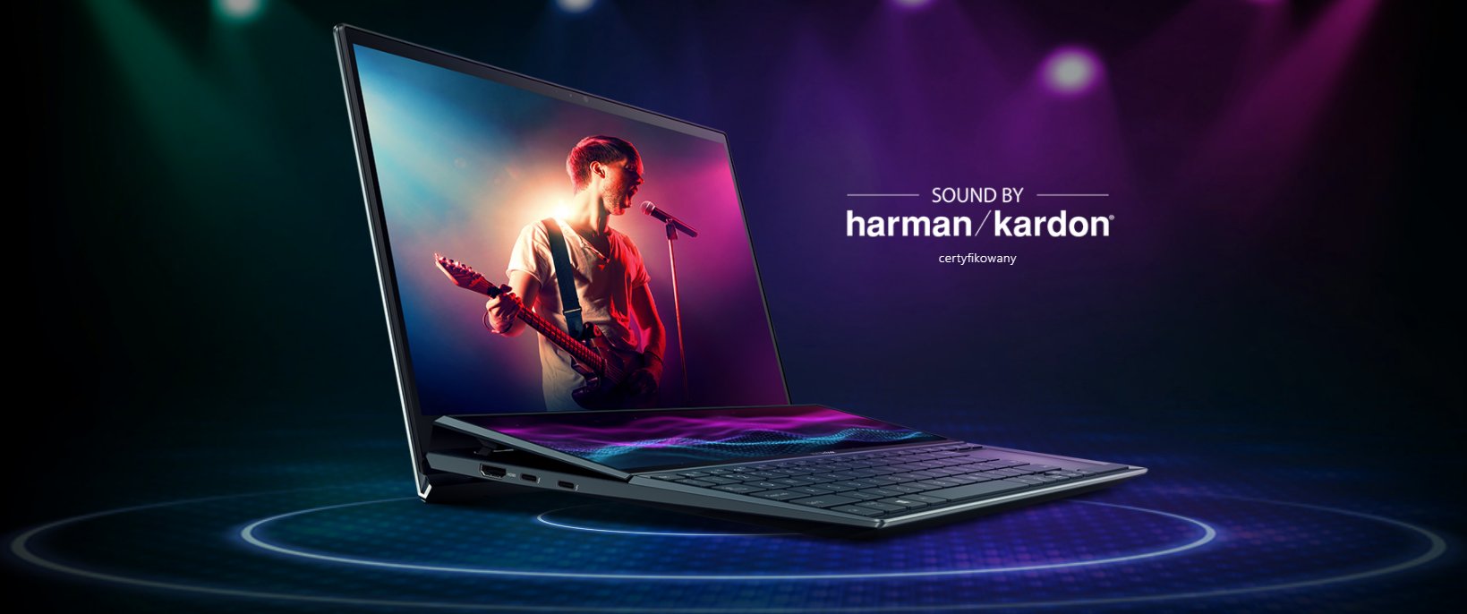 Zespół ASUS Golden Ear we współpracy ze specjalistami od dźwięku z firmy Harman Kardon stworzył najnowszą wersję technologii audio ASUS SonicMaster, a wyniki są naprawdę oszałamiające. To wyjątkowe połączenie komponentów sprzętowych i oprogramowania zapewnia laptopowi ZenBook Duo 14 najlepszą jakość dźwięku, jaką kiedykolwiek można było usłyszeć z laptopowych głośników.