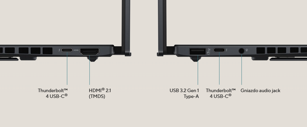 Mimo niezwykle cienkiej obudowy, inżynierowie ASUS zmieścili w urządzeniu wszystkie niezbędne porty komunikacyjne. Laptop posiada dwa złącza Thunderbolt 4 USB-C, które wspierają szybkie ładowanie, przesył danych do 40 Gb/s oraz obsługę zewnętrznych monitorów 4K lub 8K. Do dyspozycji użytkownika jest również tradycyjny port USB 3.2 Gen 1 Type-A, pełnowymiarowe wyjście HDMI 2.1 oraz gniazdo audio jack 3,5 mm. Dzięki temu nie ma konieczności noszenia ze sobą dodatkowych adapterów i stacji dokujących w codziennej pracy.