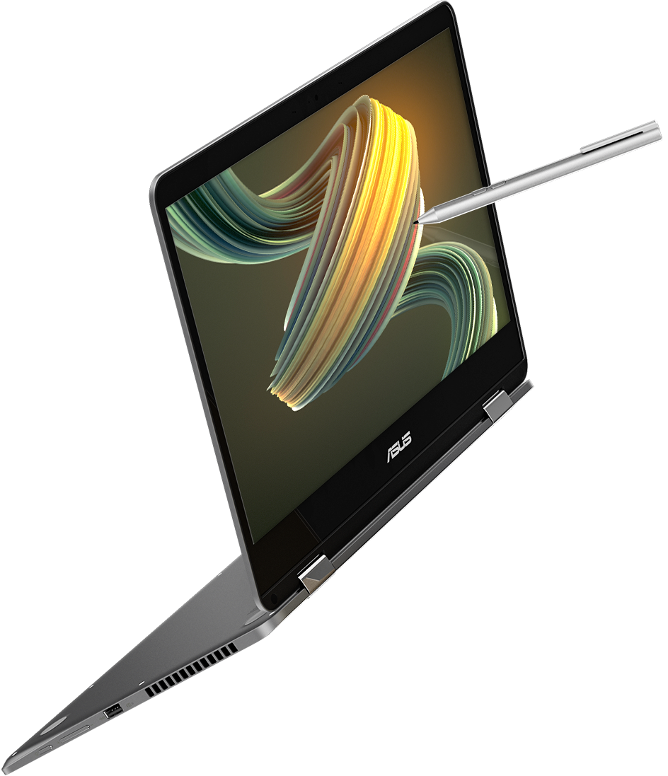 ZenBook Flip 14 ma w sobie wiele niezwykłych elementów. Zacznijmy od tego, że jest to jeden z najsmuklejszych na świecie laptopów 2 w 1 wyposażony w osobną kartę graficzną – dzięki czemu jest to potężne narzędzie do zadań kreatywnych, zdumiewająco smukłe i niebywale lekkie. Oferuje przy tym dodatkową funkcjonalność obracanego o 360° ekranu dotykowego i obsługę rysika ASUS Pen – zapewniając użytkownikom wielofunkcyjność wychodzącą daleko poza możliwości konwencjonalnych laptopów.