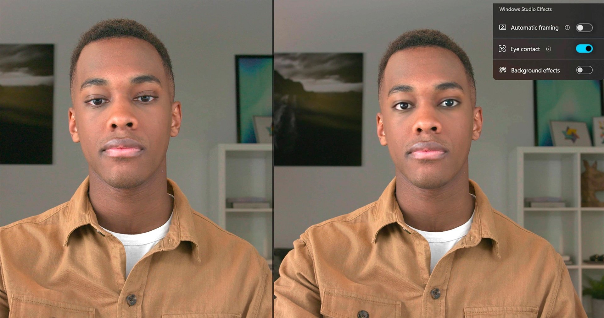 Ciesz się ulepszoną jakością filmów wideo z kamerą internetową FHD, a dwa mikrofony i rozwiązanie redukcji szumów z udziałem sztucznej inteligencji pozwalają wyraźnie usłyszeć dźwięk. Nowa funkcja automatycznego kadrowania z udziałem sztucznej inteligencji porusza się wraz z Tobą, a korekcja kontaktu wzrokowego z udziałem sztucznej inteligencji pozwala Ci wciąż brać udział w rozmowie, nawet jeśli na chwilę odwrócisz wzrok.