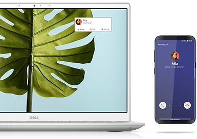 Mniej zakłóceń: dzięki aplikacji Dell Mobile Connect możesz dzwonić, pisać SMS-y, odbierać powiadomienia, a nawet wyświetlać zawartość telefonu z komputerem, by korzystać na nim z ulubionych aplikacji.