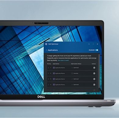 Program Dell Optimizer for Precision to wbudowana platforma sztucznej inteligencji, która uczy się Twoich sposobów działania i stale dostosowuje się do nich, umożliwiając sprawniejszą, lepiej zoptymalizowaną i wydajną pracę.