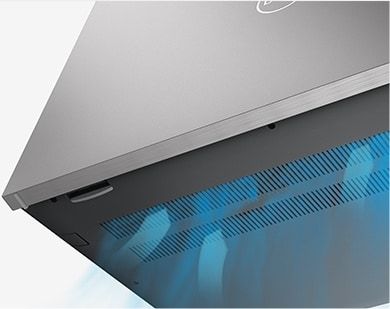 Zaprojektowany od nowa system odprowadzania ciepła pozwala utrzymać wydajność i niewielkie wymiary urządzenia. Dwa przewody odprowadzają ciepło z procesora i karty graficznej, dwa wentylatory skutecznie wentylują system, a konstrukcja z opuszczanymi zawiasami usprawnia obieg powietrza pod notebookiem.