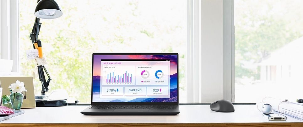 Wąskie obwódki: wąskie ramki z czterech stron ekranu zapewniają maksymalną powierzchnię 14-calowego wyświetlacza, więc możesz skupić się na pracy bez zakłóceń.