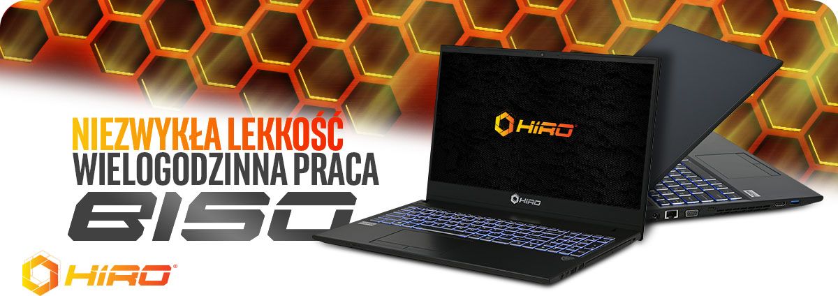 Nie martw się o baterię. Laptopy HIRO z serii B150 są wyposażone w akumulator o pojemności 31Wh, który zapewnia do 7 godzin czasu pracy na jednym ładowaniu, pozwalając pracować w podróży.