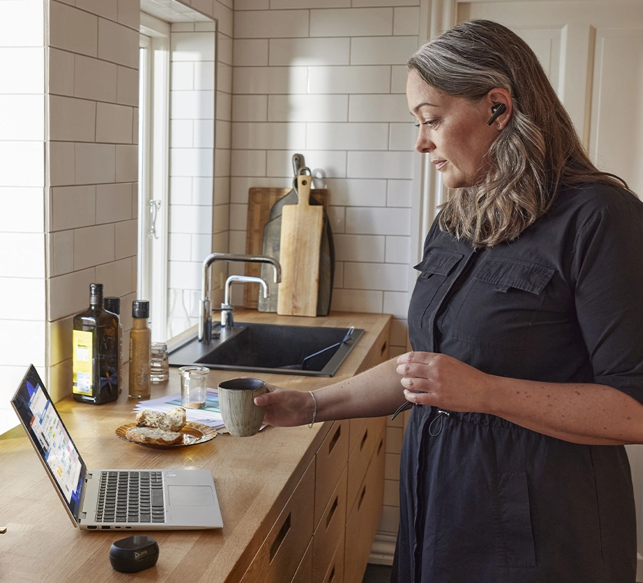 Zapewnij profesjonalny wizerunek podczas każdego połączenia dzięki kamerze 5 MP wspomaganej przez AI. Nawet w warunkach słabego oświetlenia obraz pozostaje wyraźny i naturalny. Funkcja Auto Frame inteligentnie śledzi Twoje ruchy, utrzymując Cię w centrum kadru, a technologia kontaktu wzrokowego kompensuje kąt patrzenia, gdy skupiasz się na ekranie. Kiedy potrzebujesz prywatności, fizyczna przysłona chroniąca prywatność daje Ci pełną kontrolę nad tym, co widzą inni.