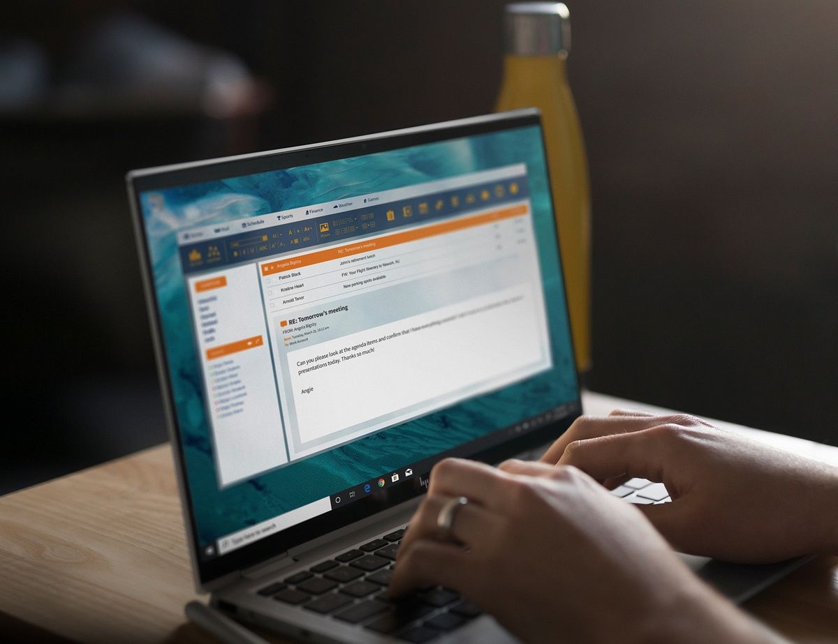 Zyskaj błyskawiczną ochronę przed ciekawskimi spojrzeniami dzięki opcjonalnej funkcji HP Sure View Reflect, która sprawia, że ekran oglądany z boku wygląda jak błyszcząca miedziana powierzchnia, co czyni wyświetlane treści nieczytelnymi.