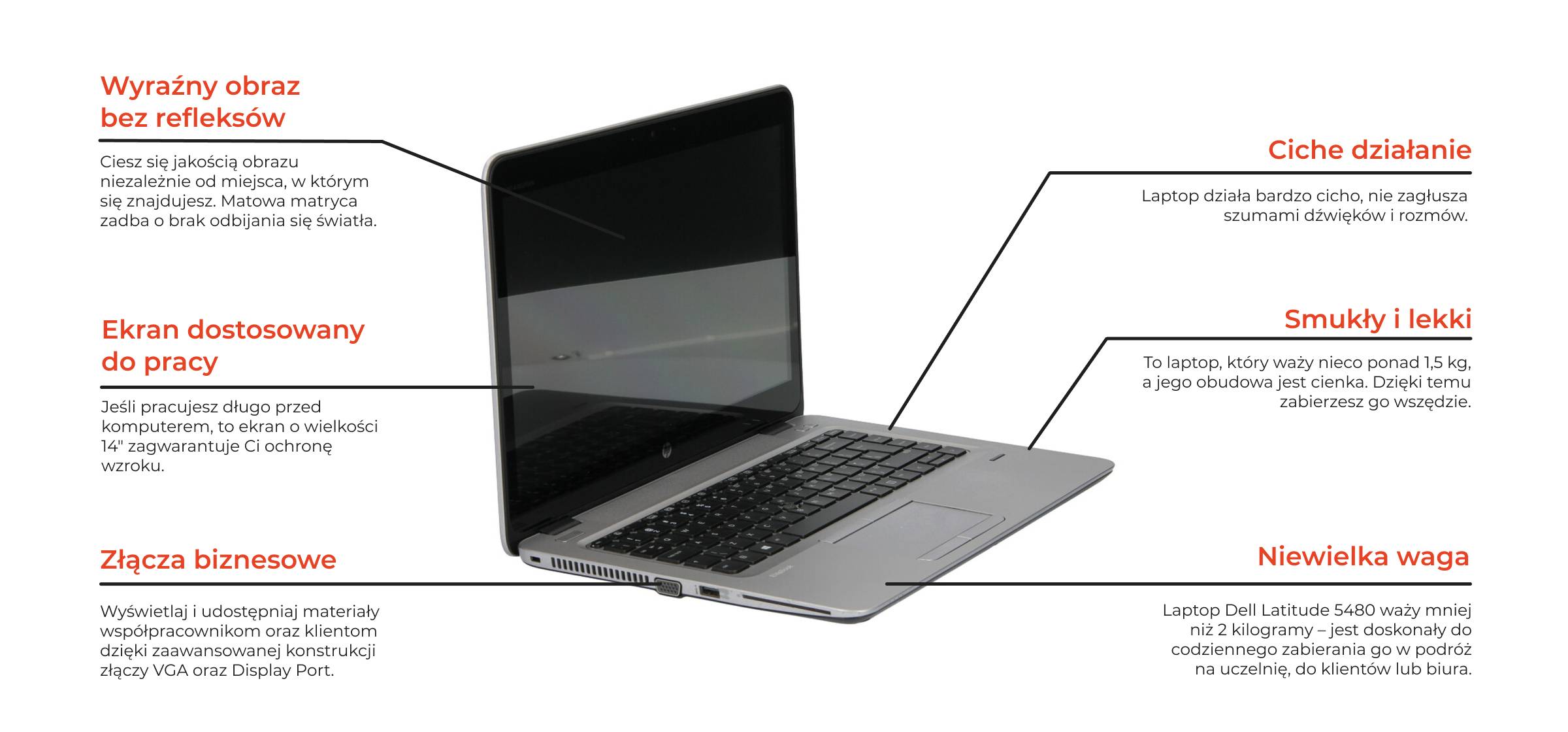 Mimo swojej lekkiej konstrukcji laptop HP EliteBook jest urządzeniem bardzo wydajnym. Za sprawą portów USB (C oraz 3.1) możesz w łatwy sposób przesyłać swoje dane. Bez problemu wyświetlisz obraz na ekranie dodatkowego monitora lub projektora dzięki technologii Display Port oraz VGA. Wykorzystasz także jego czytnik pamięci, złącze stacji dokującej oraz wiele możliwości łączenia się z internetem oraz innymi urządzeniami – przez wifi, bluetooth lub standardowy RJ-45.