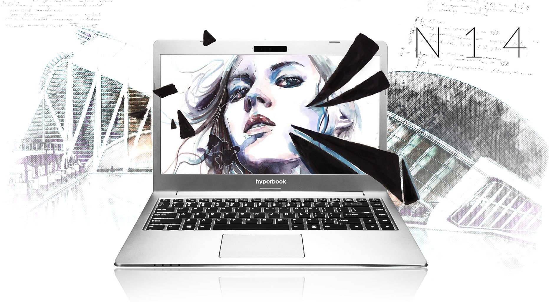 Hyperbook N14S jest świetnym towarzyszem podróży! Waga 1,4kg i grubość tylko 19mm sprawiają, że możesz zabrać swój sprzęt ze sobą wszędzie i zapomnieć o problemach z transportem.