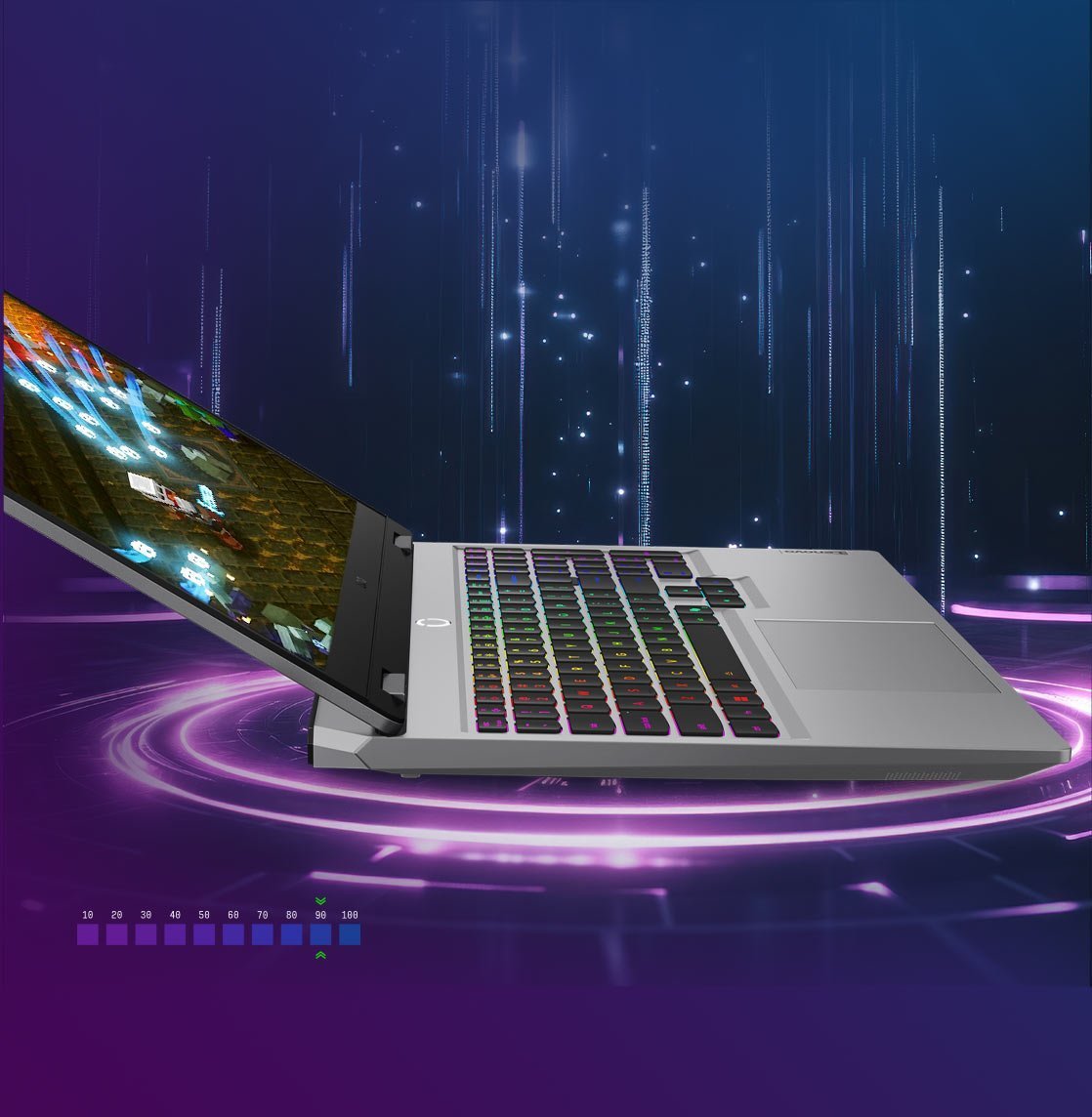 Pełny układ klawiatury Lenovo LOQ, wyposażonej w sekcję numeryczną, duże klawisze strzałek i 24‑strefowe podświetlenie RGB* to Twoja przepustka do komfortowego użytkowania. Dzięki przełącznikom z miękkim lądowaniem i skokiem klawisza 1,5mm każde naciśnięcie jest płynne i satysfakcjonujące. Lenovo Spectrum oferuje 16 milionów efektów kolorystycznych, które możesz dopasować zgodnie z Twoimi preferencjami. Doświadczaj wygody każdego kliknięcia niezależnie od tego czy grasz, piszesz ze znajomymi na czacie lub tworzysz wypracowanie.