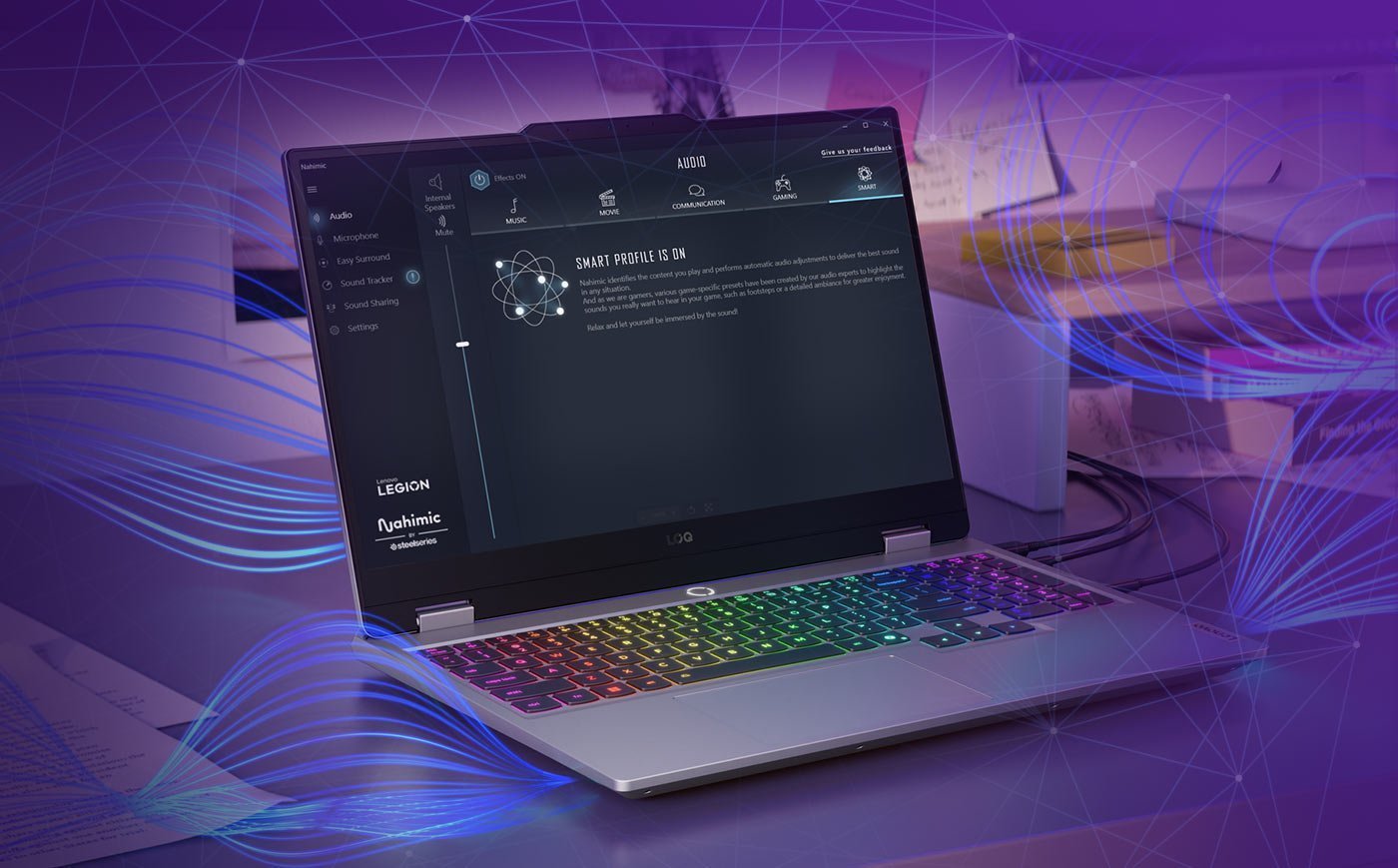Nahimic by SteelSeries rewolucjonizuje gaming, oferując dźwięk 3D napędzany przez AI i inteligentne profile dźwiękowe zapewniając niespotykaną immersję. Inteligentny profil AI dostosowuje ustawienia dźwięku w zależności od Twojej aktywności, od grania po odtwarzanie multimediów. Zyskaj przewagę taktyczną dzięki Sound Tracker 2.0, który wizualizuje pozycje przeciwników za pomocą wskazówek dźwiękowych. Dopracuj swój dźwięk za pomocą 10‑pasmowego equalizera i efektów audio Nahimic. Podziel się swoim doświadczeniem dźwiękowym z przyjaciółmi dzięki funkcji Sound Sharing+, która pozwala podłączyć dwa zestawy słuchawkowe do laptopa. Technologia Nahimic oparta na sztucznej inteligencji zapewnia bardziej wciągające, konkurencyjne i spersonalizowane wrażenia z gry. To nie tylko dźwięk ‑ to inteligentniejszy, bardziej angażujący sposób grania