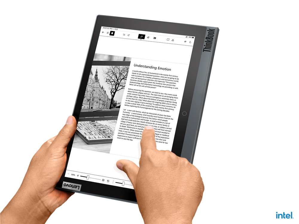 Laptop Lenovo ThinkBook Plus G2 ITG, jest wyposażony w rysik dla ekstremalnej funkcjonalności. Gdy rysik nie jest potrzebny, zgrabnie chowa się w wyznaczonym do tego, w obudowie laptopa. Dzięki tej opcji Możemy wygodnie poruszać się po wszystkich funkcjach laptopa w formie Tabletu/Czytnika.