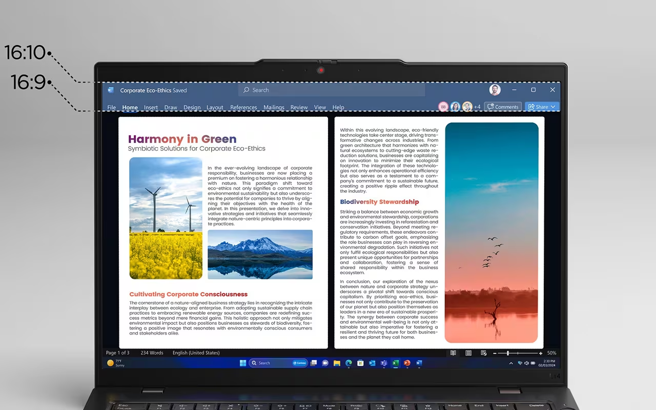 Doświadcz krystalicznie czystego obrazu dzięki wysokiej rozdzielczości, antyodblaskowej matrycy, dostępnej w dwóch wariantach, w tym z opcjonalną obsługą dotyku. Twoje doznania multimedialne dopełni potężny system audio. Podwójne głośniki z technologią Dolby Atmos® oraz systemem Elevoc Audio dostarczają bogaty, przestrzenny dźwięk, który sprawia, że zarówno rozmowy, jak i materiały wideo brzmią doskonale.