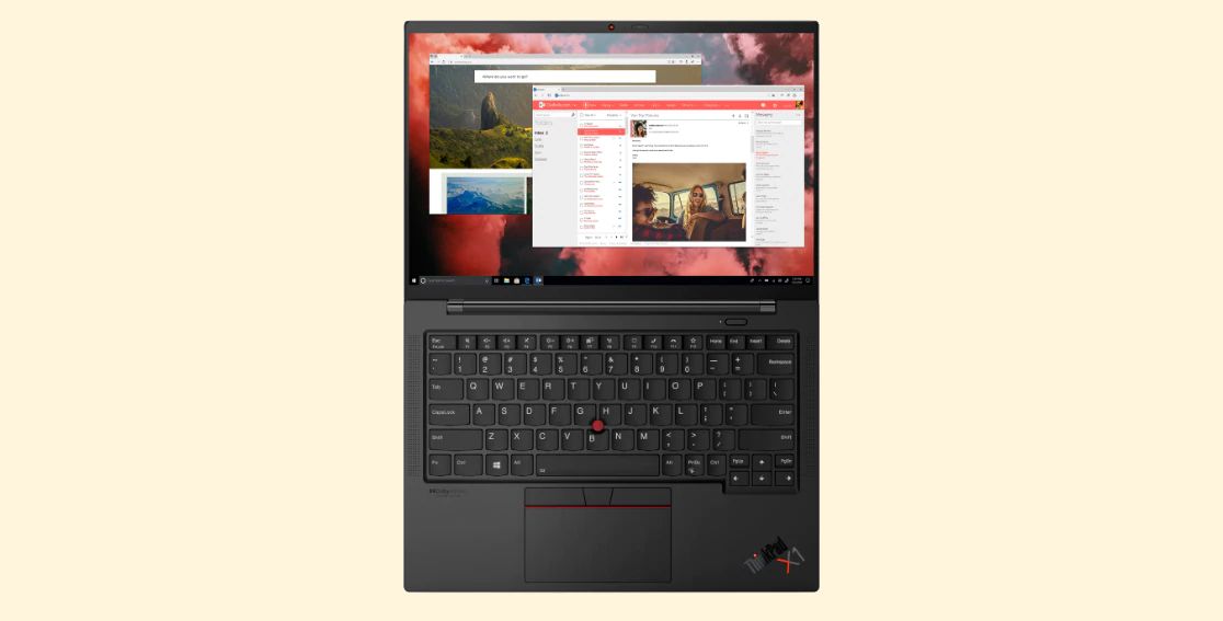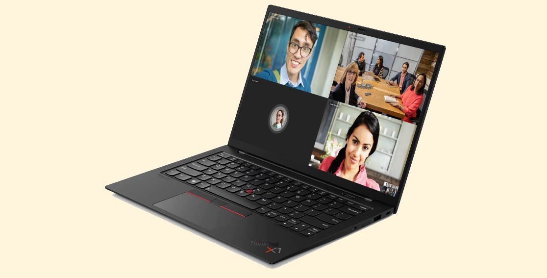 Dolby Atmos® Speaker System w laptopie ThinkPad X1 Carbon 9. generacji obejmuje dwa skierowane w górę głośniki odtwarzające wyższe tony i dwa skierowane w dół głośniki niskotonowe. Zapewniają one realistyczne wrażenia dźwiękowe, które uprzyjemnią zarówno pracę, jak i rozrywkę. Dolby Voice® i cztery mikrofony dookólne dalekiego zasięgu wraz z kamerą o wysokiej rozdzielczości usprawniają współpracę zdalną — podczas rozmów będzie Cię słychać wyjątkowo wyraźnie.