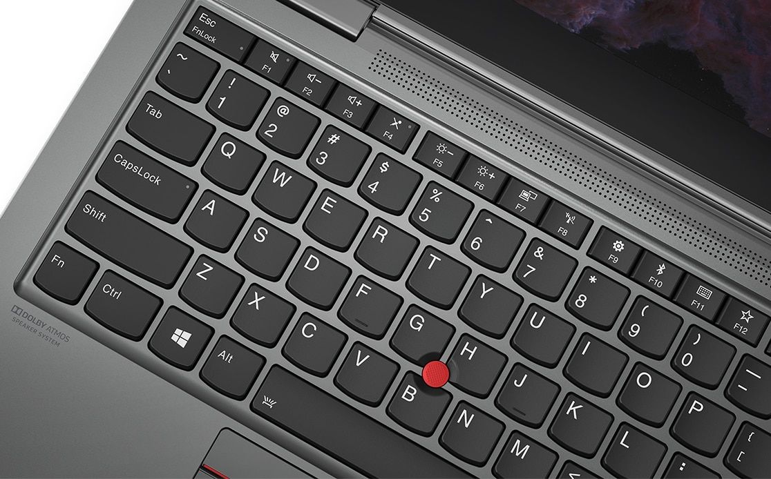 Laptop X1 Yoga 4. generacji emituje dźwięk przestrzenny dzięki technologii Dolby Atmos® Speaker System. Dwa głośniki skierowane w górę obok klawiatury łączą się z dwoma głośnikami niskotonowymi skierowanymi w dół na spodzie urządzenia. Efekt? Ulepszony dźwięk, który wydaje się opływać Cię dookoła. Co więcej, cztery mikrofony dookólne eliminują niepożądane hałasy podczas połączeń i rejestrują głos z całego pokoju. Dzięki temu możesz użyć asystenta głosowego do wybudzenia komputera, odtwarzania muzyki i korzystania z innych funkcji.