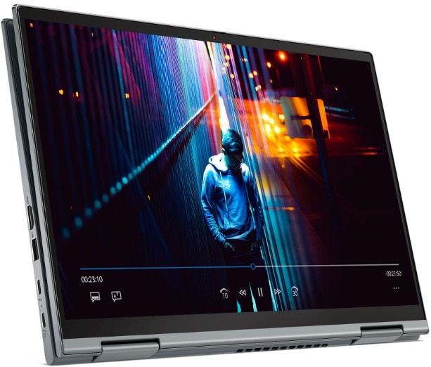 Laptop „2 w 1” ThinkPad X1 Yoga 6. generacji ma udoskonalony wyświetlacz o proporcjach 16:10 z wąską ramką, prezentujący obraz o wysokiej rozdzielczości i bogatej kolorystyce. Wydajna karta graficzna Intel® Iris® Xe prezentuje obraz o zadziwiającej wyrazistości i wierności kolorów — zarówno podczas wideokonferencji, jak i przeglądania stron internetowych czy oglądania multimediów. Nowy panel o niskim poborze mocy jest nie tylko energooszczędny, ale też posiada certyfikat TÜV Rheinland potwierdzający skuteczność redukcji światła niebieskiego w trosce o wzrok.