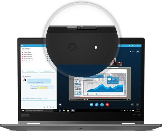 Skorzystaj z opcji hybrydowej kamery na podczerwień i dotykowego czytnika linii papilarnych, aby logować się bezpiecznie przy użyciu Windows Hello. Wystarczy widok Twojej twarzy lub dotknięcie palca, aby błyskawicznie zacząć pracę. Nie musisz się też obawiać szpiegowania za pośrednictwem kamery — ten komputer „2 w 1” ma fizyczną osłonę ThinkShutter, dzięki której obiektyw widzi Cię tylko wtedy, kiedy sobie tego życzysz.