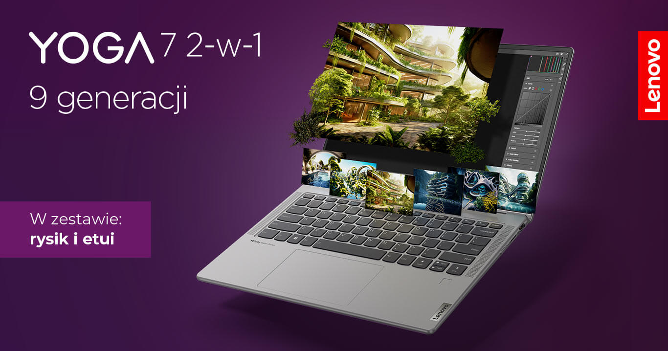 Każdy twórca potrzebuje narzędzi, które usprawniają pracę i podnoszą komfort użytkowania. Laptopy Yoga 7 2‑w‑1 generacji 9 dostępne są w konfiguracji z rysikiem i etui w zestawie, lub rysikiem, etui oraz bezprzewodową myszą ‑ gotowe zestawy do twórczej pracy gdziekolwiek jesteś.*Akcesoria znajdujące się w zestawie uzależnione od modelu.