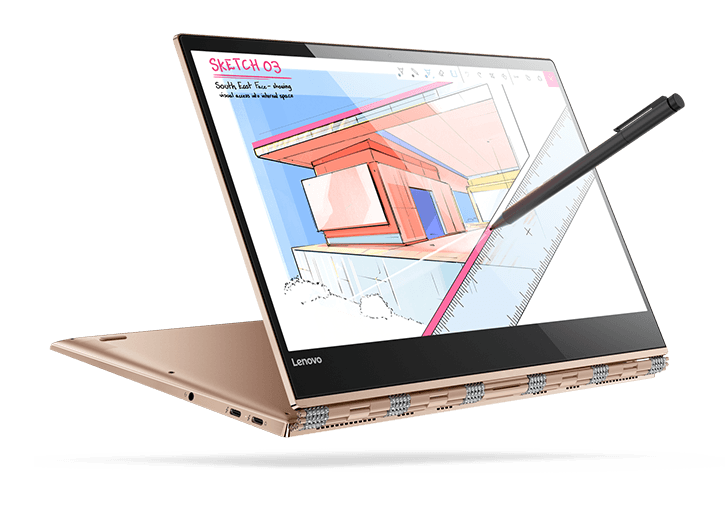 Poprzez drastyczne uproszczenie formy, a także zmniejszenie złożoności wyglądu, zaprojektowaliśmy Yoga 920 tak, aby laptop wyglądał na jeszcze cieńszy. Oferujący polerowane aluminium CNC i zbudowany tak, by wytrzymywał zużycie, laptop Yoga 920 jest tak wytrzymały, jak elegancki. Dostępny w ciepłych wyszukanych barwach miedzi, brązu i platyny.