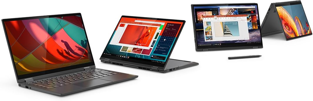Mierzący 16,9 mm / 0,67 ”i 1,35 kg / 2,98 funta Yoga C640 jest ultraprzenośny i ma obudowę z piaskowanego aluminium. Obróć z laptopa do trybu tabletu i z powrotem, dzięki obracanemu zawiasowi 360 stopni zaprojektowanemu z myślą o stabilności niezależnie od trybu.