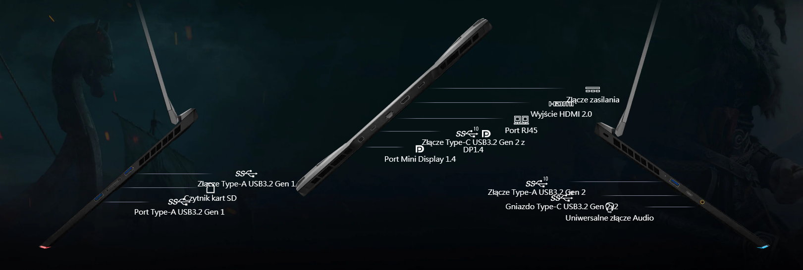GE66 Riders wyposażony jest w najbardziej kompletny zestaw złączy We/Wy, które pozwalają na obsługę wszystkich stosowanych obecnie standardów transmisji danych lub wyjść sygnału wideo. Dzięki temu gracze mogą się cieszyć maksymalną elastycznością w korzystaniu z laptopa.