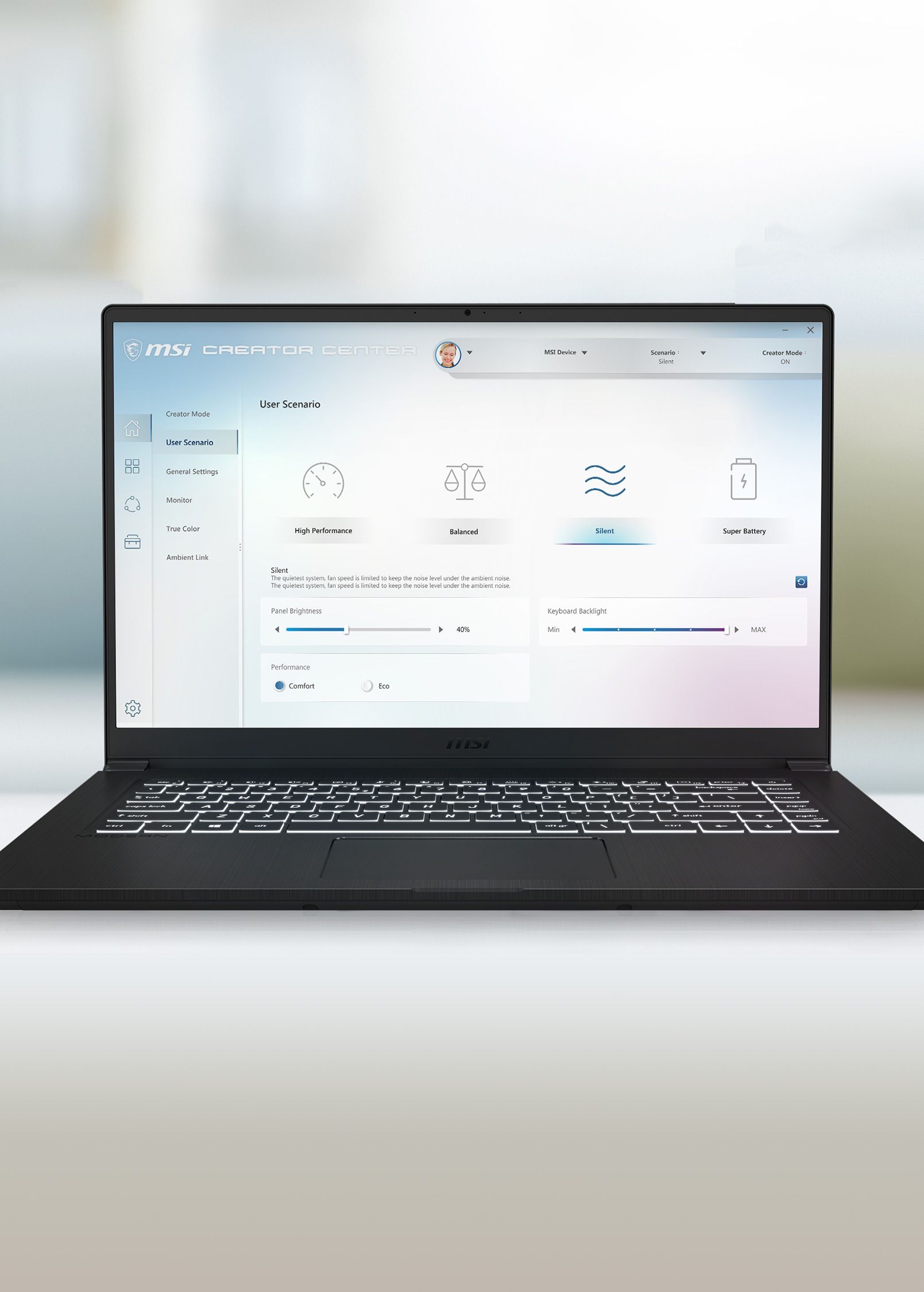 Wyjątkowa technologia MSI True Color oferuje różne tryby pracy po to, aby wyświetlany obraz jak najlepiej był dopasowany do różnych zastosowań.