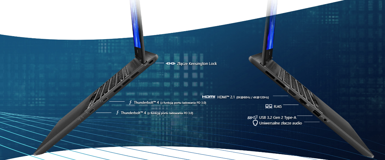 Łatwe podłączanie i tworzenie. Laptopy z serii Prestige 14 AI Evo C1M oferują użytkownikom szeroki zestaw złączy we/wy. Do dyspozycji mamy tu takie porty jak: USB Type-A, USB Type-C, HDMI™ i Thunderbolt™ 4. Ciesz się ultrasmukłą i lekką obudową bez potrzeby rezygnowania z możliwości podłączenia jakiegokolwiek urządzenia peryferyjnego.