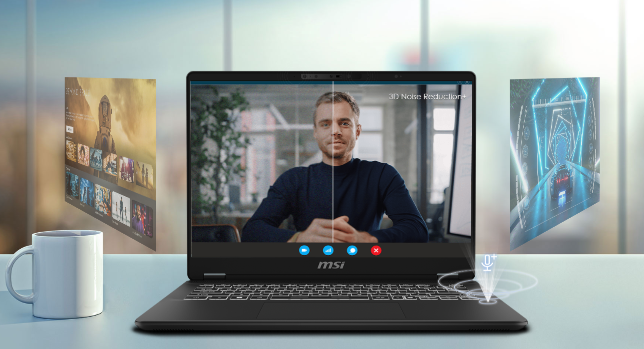 Silnik MSI AI Engine jest w stanie wykrywać scenariusze pracy użytkownika i automatycznie dostosować do nich ustawienia sprzętowe tak, aby osiągnąć jak najlepszą wydajność. Dzięki prostym w obsłudze trybom pracy i zasobom dostrojonym przez AI, możesz skupić się na ważnych rzeczach, takich jak tworzenie, praca i rozrywka. Dzięki funkcji AI Noise Cancellation Pro i przestrzennemu układowi trzech mikrofonów możesz cieszyć się krystalicznie czystym dźwiękiem nawet w najbardziej hałaśliwym otoczeniu.