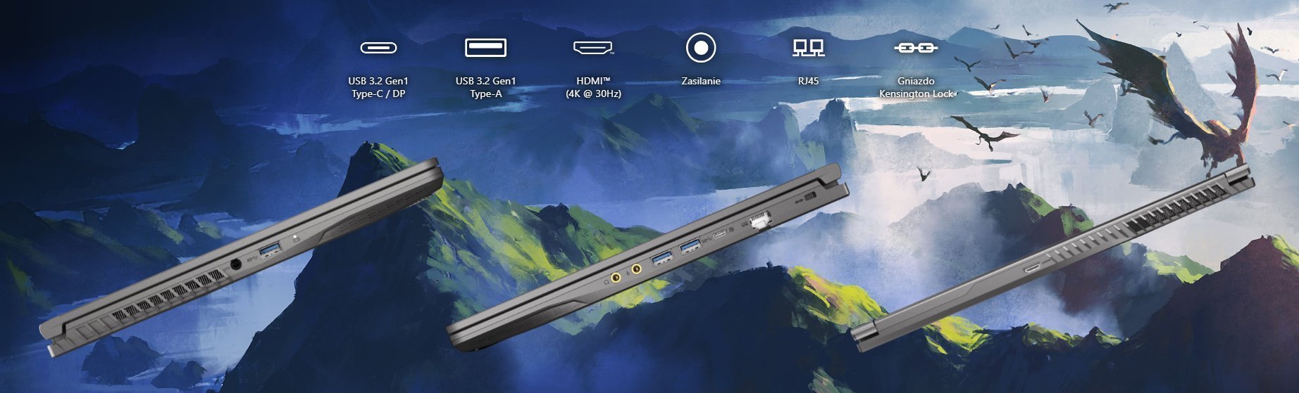 Notebooki z serii Thin 15 oferują wszechstronne możliwości wymiany danych i łatwego podłączania wszelkiego typu urządzeń peryferyjnych.