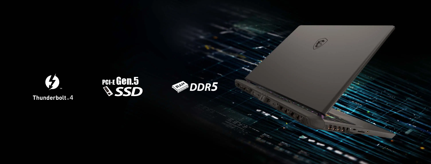 Gamingowe laptopy MSI zostały stworzone z myślą o graczach. Dzięki dużej rozdzielczości i wysokiej częstotliwości odświeżania sprawiają, że świat gier staje się dużo bardziej realistyczny i bardziej płynny niż kiedykolwiek wcześniej. Wyobraź sobie, że możesz jednocześnie pracować lub grać na kilku wyświetlaczach. Dzięki złączom HDMI™ 2.1, Thunderbolt™ 4 i USB Type-C jest to możliwe.