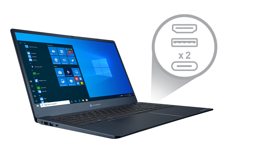 dynabook Satellite Pro C50 może i jest kompaktowy, ale oferuje pełną gamę opcji podłączania urządzeń. Złącze USB Type-C™ 3.2 obsługuje ładowanie, zewnętrzny wyświetlacz i przesyłanie danych, a dzięki opcjonalnej stacji dokującej dynabook USB-C Dock można korzystać ze wszystkich tych funkcji naraz. Z kolei złącze HDMI 1.4 ułatwia wyświetlanie obrazu na zewnętrznych ekranach, a szybkie i niezawodne interfejsy Gigabit LAN i Wi-Fi 802.11ac umożliwiają bezproblemowy dostęp do sieci. Jeśli zaś potrzebujesz szybko wymienić się plikami lub podłączyć urządzenia peryferyjne, masz do dyspozycji czytnik kart SD, dwa złącza USB Type-A i wbudowany interfejs Bluetooth 4.2.