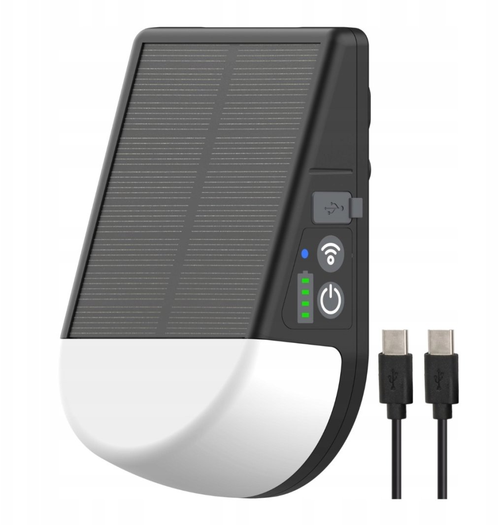 Lampa jest zasilana wymiennym akumulatorem Li-Ion 18650, który można ładować zarówno przez port USB-C, jak i wbudowany panel słoneczny. Dzięki temu masz elastyczność w wyborze metody ładowania, co czyni ją idealnym rozwiązaniem na zewnątrz.