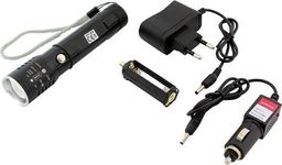 - Nie musisz wymieniać baterii! Latarka posiada wymienny akumulator typu 18650, który można ładować bezpośrednio w latarce za pomocą ładowarki sieciowej albo samochodowej (w zestawie).