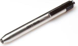 Długopisowa latarka LED z obudową wykonaną ze stali nierdzewnej. Latarka posiada włącznik obsługiwany kciukiem, a także stalowy klips.