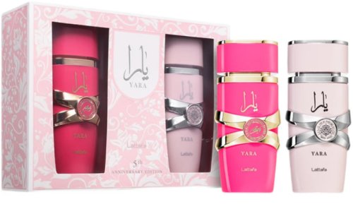 Zestaw Perfum Yara & Yara Candy Anniversary Edition od Lattafa to niezwykła oferta dla kobiet, które cenią elegancję oraz trwałość zapachów. Ten luksusowy zestaw składa się z dwóch perfum o pojemności 100 ml każdy, które harmonijnie łączą intensywne, orientalne nuty z słodkimi, gourmandowymi akordami, oferując wyjątkowe doznania zapachowe.