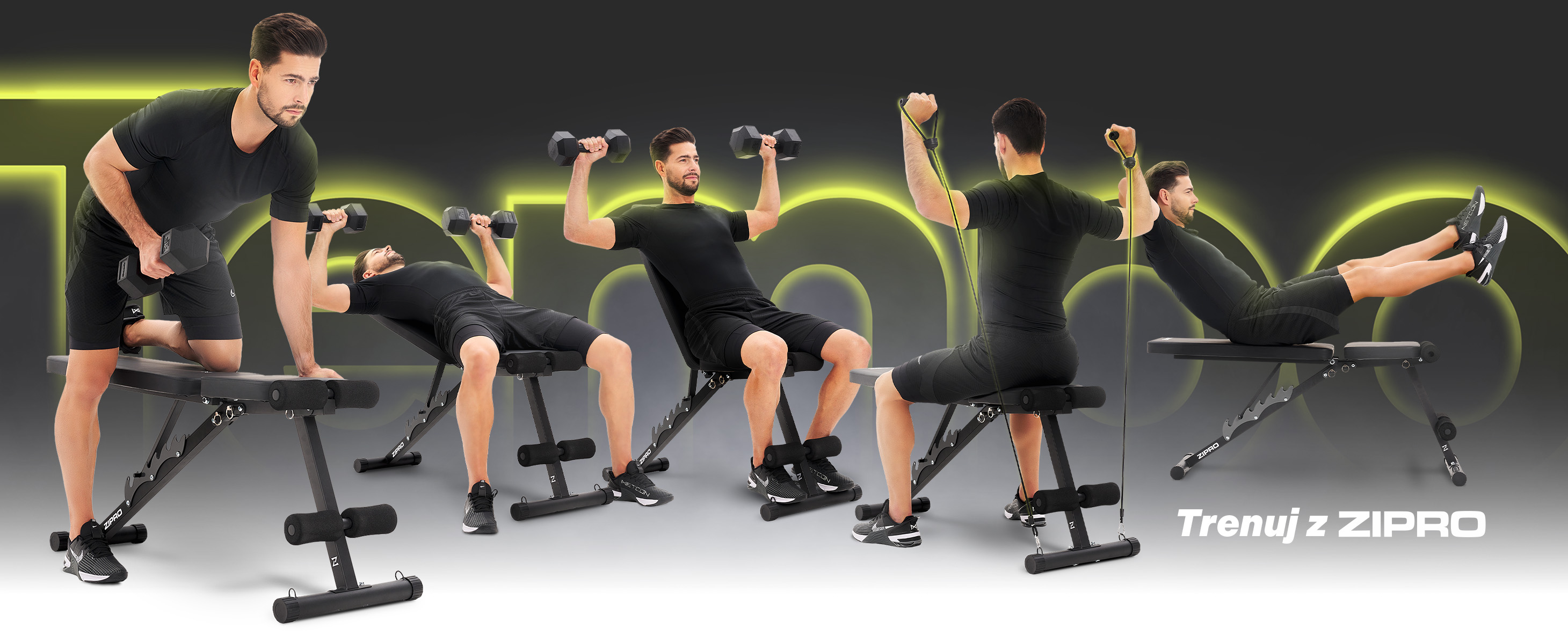Ławka łamana do ćwiczeń ZIPRO Tempo pozwala na wykonywanie różnych ćwiczeń, w zależności od posiadanego sprzętu. Można ją wykorzystać do ćwiczeń z hantlami, ćwiczeń ze sztangą, jak również wykorzystać dostępne ekspandery. Świetnie spisze się również jako ławka do treningu z wykorzystaniem ciężaru własnego ciała.