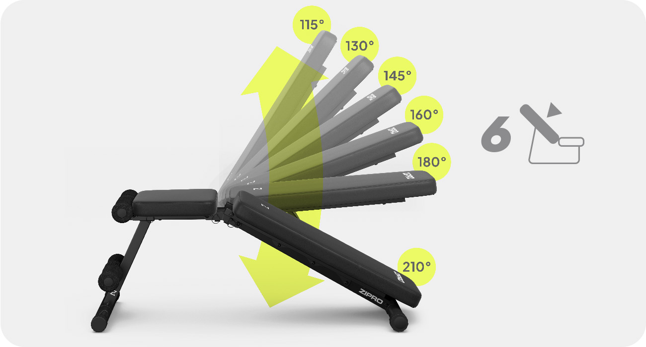 ZIPRO Tempo pozwala ustawić oparcie w jednej z 6 pozycji, dzięki czemu z łatwością dopasujesz je do siebie i rodzaju ćwiczeń. Miękkie stabilizatory nóg i kolan zapewniają stabilność i wygodę, wspierając Cię podczas każdego treningu – niezależnie od intensywności.
