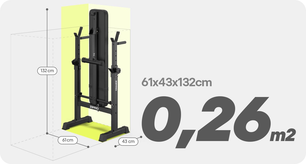 Możliwość złożenia ławki oznacza również, że zajmuje mniej miejsca, gdy nie jest wykorzystywana. To rozwiązanie w sam raz do wykorzystania wtedy, gdy nie dysponujemy osobnym pomieszczeniem przeznaczonym na domową siłownię.