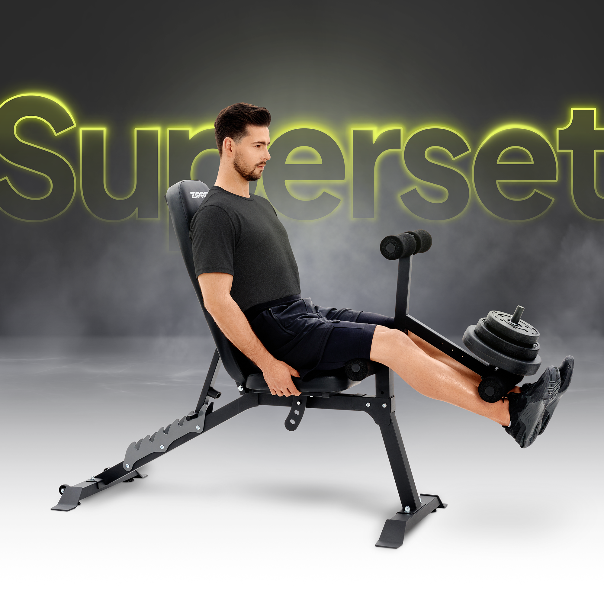 Spore możliwości dopasowania ustawienia ławki ZIPRO Superset sprawiają, że okazuje się pomocna w treningu większości partii ciała.