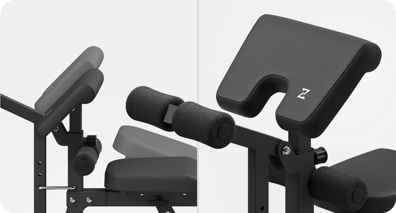 - Modlitewnik zwiększa opcje treningu, do tego jest demontowany aby nie ograniczał zakresów ruchów w partiach mięśniowych gdzie nie jest wykorzystywany