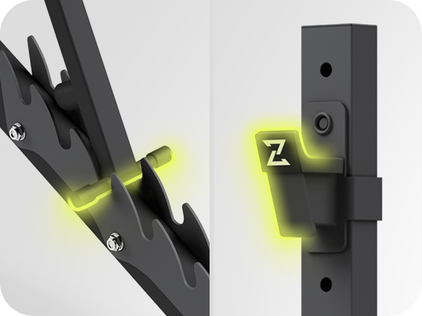 - Szeroki zakres ustwienia wysokości wsporników pod sztangę.