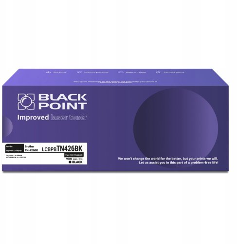Toner zamiennik Brother TN-426BK od marki Black Point to produkt, który gwarantuje znakomitą jakość wydruków oraz niezawodność. Stworzony z myślą o drukarkach Brother, takich jak HL-L8260CDW, HL-L8360CDW, DCP-L8410CDW, MFC-L8690CDW oraz MFC-L8900CDW, ten toner zapewnia doskonałe rezultaty w każdej sytuacji.