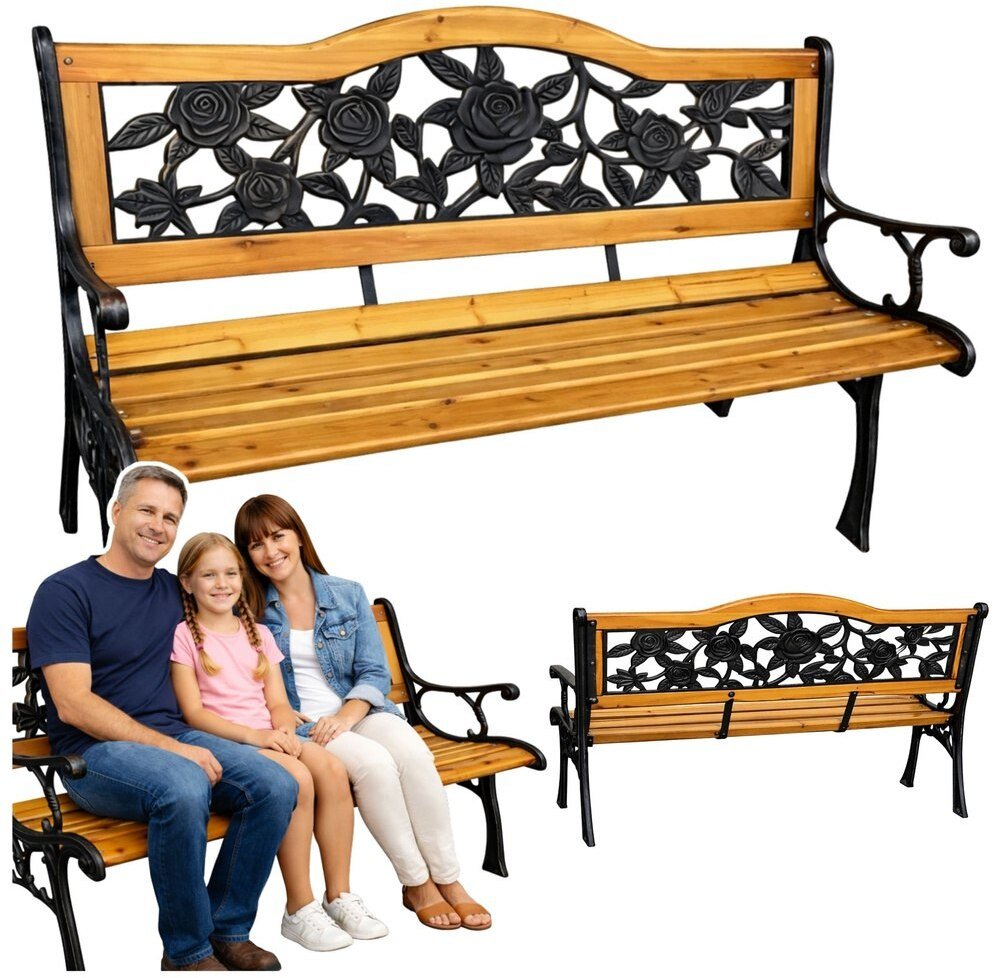 Lean Ławka Ogrodowa Drewniana Metalowa Ławeczka Parkowa z oparciem EDUKAMP