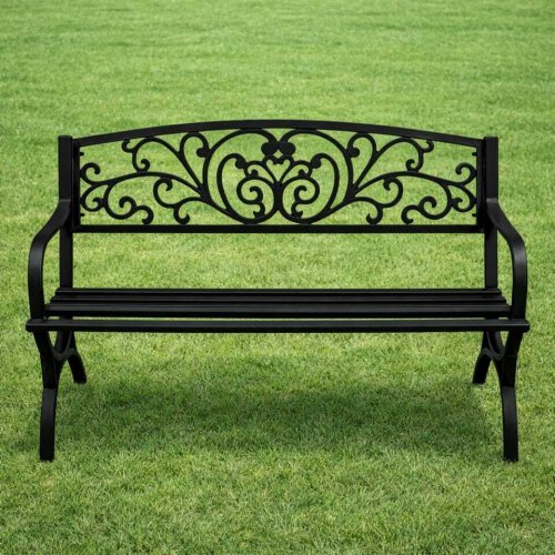 Lean Ławka Ogrodowa Taras Ogród Parkowa Metalowa Oparcie Zdobiona Czarna 127 cm