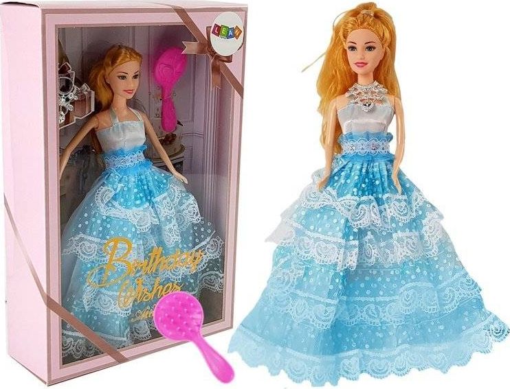 Lean Sport Lalka jasnowłosa Księżniczka niebieska suknia szczotka 28cm