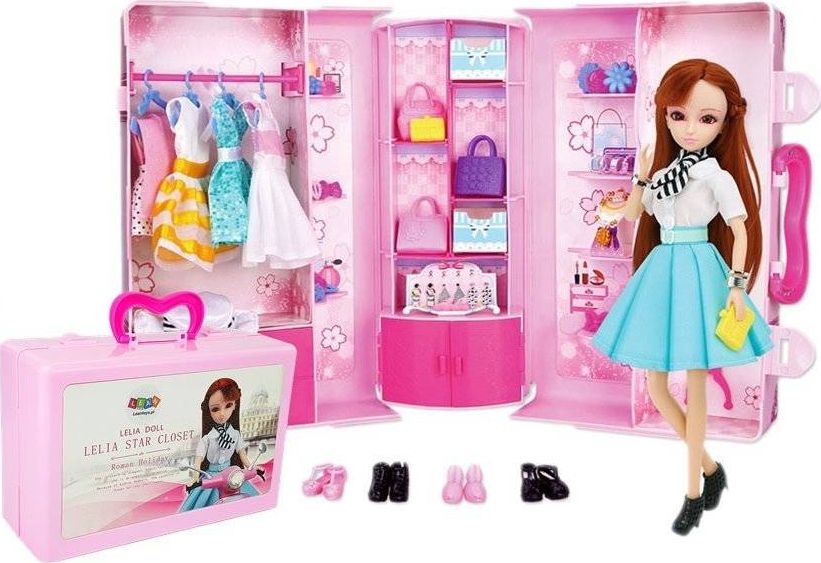 Prezentowana szafa to wspaniała propozycja dla małych dziewczynek, które uwielbiają zabawę lalkami, czy podpatrując mamę, jak dba o siebie, a teraz może to zrobić ze swoją lalką .Garderobę można mieć pod ręką. Dzięki zamykanej walizce i uchwytowi, Twoje dziecko może zabrać ją dosłownie wszędzie. Na pewno urozmaici to zabawę z rówieśnikami. Piękny różowy kolor z idealnym odwzorowaniem każdego szczegółu sprawi, że będzie można się poczuć jak w prawdziwej szafie, o której każda mała dziewczynka marzy.