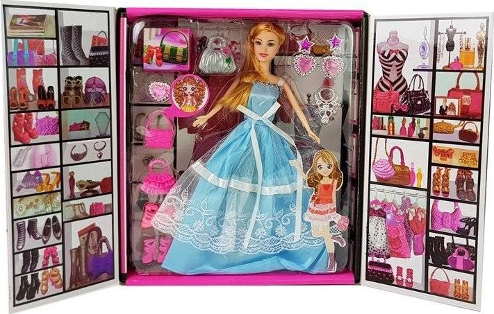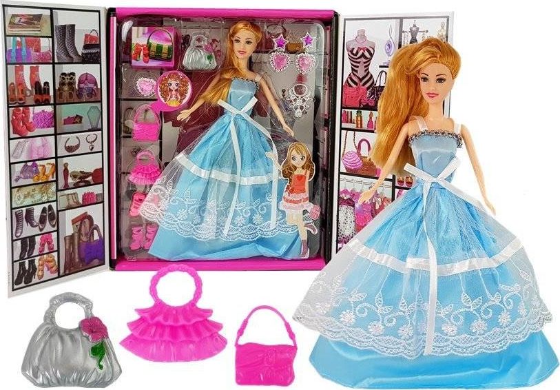 Lalka niebieska suknia balowa dodatki marki Import leantoys