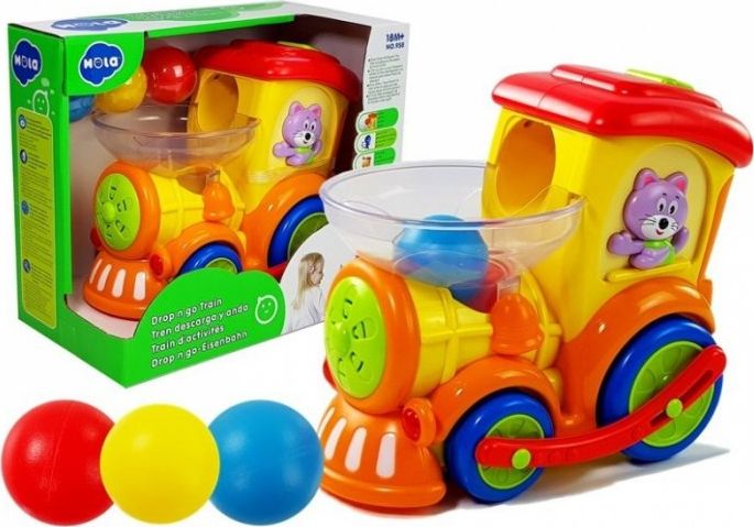 W skład tego barwnego zestawu wchodzą: - ciuchcia, -zestaw 3 kolorowych piłek