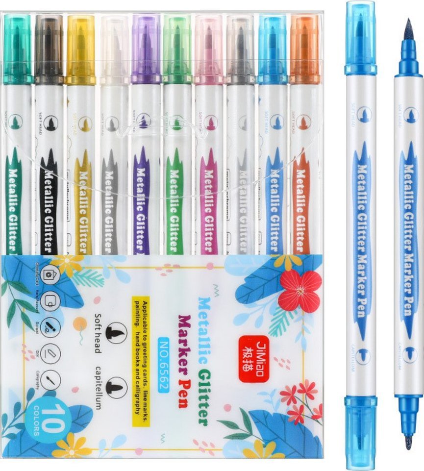 Lean Zestaw Pisaków Metalicznych Z Brokatem Kolorowe Dwustronne 10 Szt